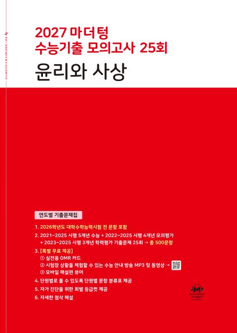 eBook 시리즈 대여 2026 수능대비 현자의 돌 윤리와 사상 킬리만자로 쿼터 모의고사 임수민 메가스터디교육 10% 23,400원 26,000원 1,170 적립 eBook 시리즈 대여 2026 수능대비 현자의 돌 윤리와 사상 기출로 시작하는 감각 임수민 메가스터디교육 10% 23,400원 26,000원 1,170 적립 eBook 시리즈 대여 2026 수능대비 현자의 돌 윤리와 사상 6평 분석서 & 실력 완성 120제 임수민 메가스터디교육 10% 22,500원 25,000원 1,125 적립 eBook 시리즈 대여 2026 수능대비 현자의 돌 윤리와 사상 모의고사 시즌1 임수민 메가스터디교육 10% 24,300원 27,000원 1,215 적립 정오답 체크 +2 eBook 시리즈 대여 2026 수능대비 현자의 돌 윤리와 사상 파이널 모의고사 & 9평 분석서 임수민 메가스터디교육 10% 31,500원 35,000원 1,575 적립 시험 응시 +3 eBook 2027 마더텅 수능기출문제집 윤리와 사상 마더텅 편집부 마더텅 10% 19,710원 21,900원 985 적립 시험 응시 +3 eBook 시리즈 [2026 전대실모] 윤리와사상 (5월 시행) 새이솔 새이솔 7,000원 350 적립 정오답 체크 +2 eBook 시리즈 [2026 전대실모] 윤리와사상 (9월 시행) 새이솔 새이솔 7,000원 350 적립 시험 응시 +3 eBook 무료 대여 2025학년도 러셀CORE Weekly 모의고사 제5회(윤리와 사상) 김종익 - 0원 eBook 무료 대여 2025학년도 러셀CORE Weekly 모의고사 제7회(윤리와 사상) 김종익 - 0원 eBook 시리즈 대여 2027 수능대비 현자의 돌 윤리와 사상 수능 실전 개념 완성 임수민 메가스터디교육 10% 27,900원 31,000원 1,395 적립 eBook 2027 마더텅 수능기출 모의고사 25회 윤리와 사상 마더텅 편집부 마더텅 10% 12,510원 13,900원 625 적립